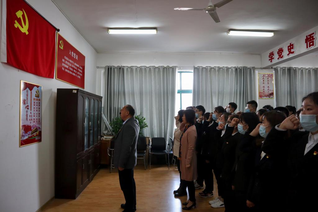 首先必威西汉姆官网平台党总支和师生两个支部全体委员为预备党员佩戴党徽。随后,必威西汉姆官网平台党总支书记带领全体预备党员和正式党员,面向党旗,庄严宣誓,誓言铿锵,激动人心。在党旗下,预备党员代表表态发言,表达了对党忠诚,积极工作的决心。