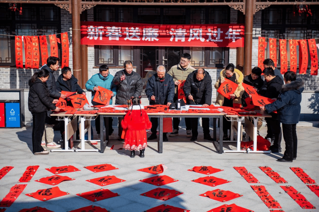 2024年1月25日,河南省漯河市源汇区纪委监委组织离退休干部在问十乡陶桥村为群众义写廉洁春联。