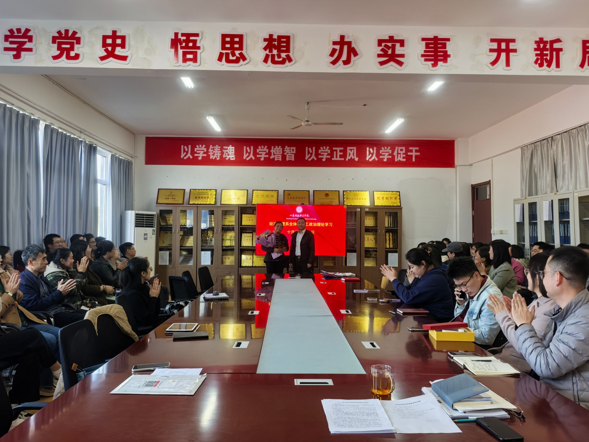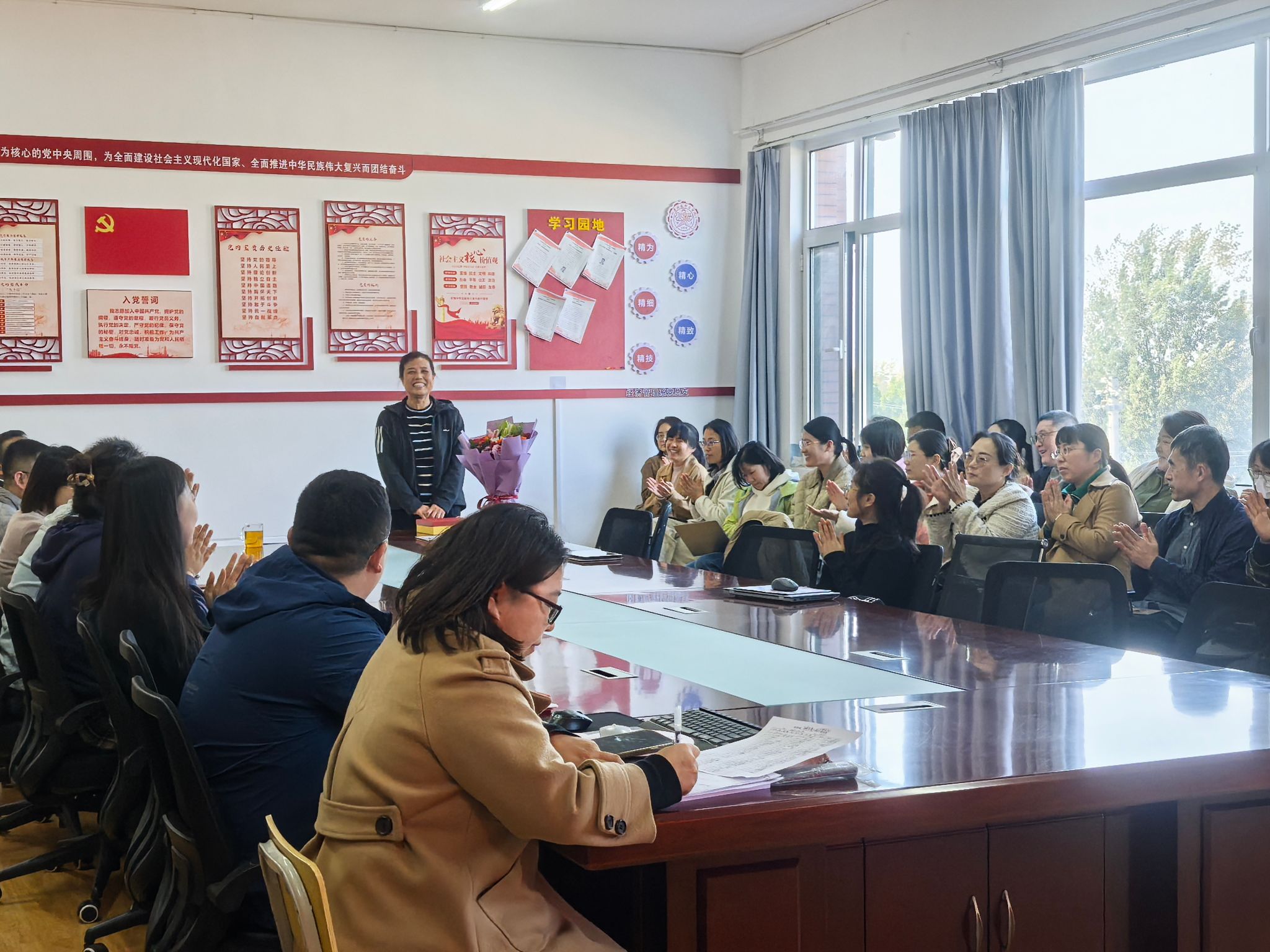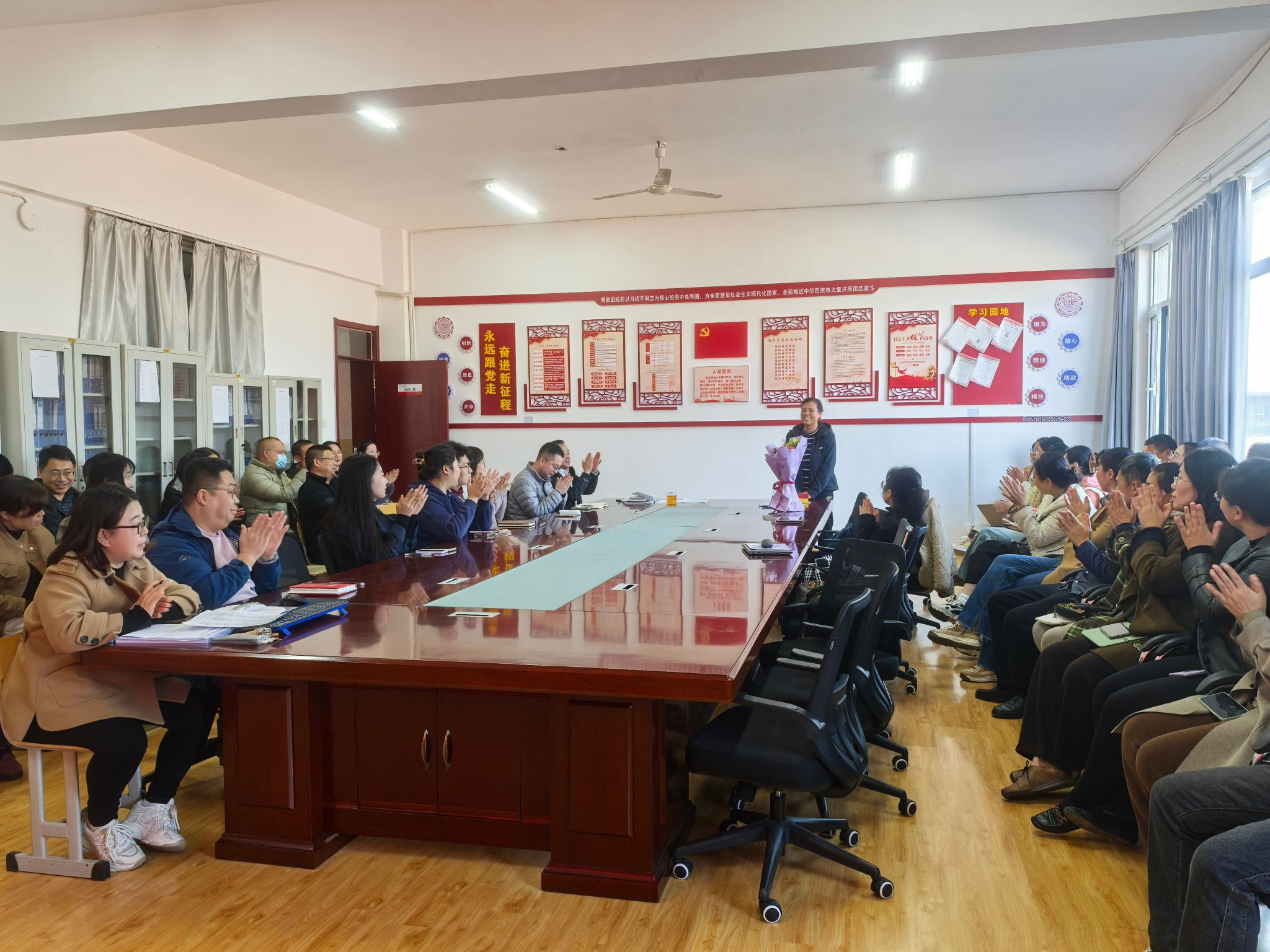 10月29日,恰逢重阳节,必威西汉姆官网平台分工会在笃志楼404会议室为退休教师丁爱美举行荣退仪式。系部全体教师参加仪式并合影留念。