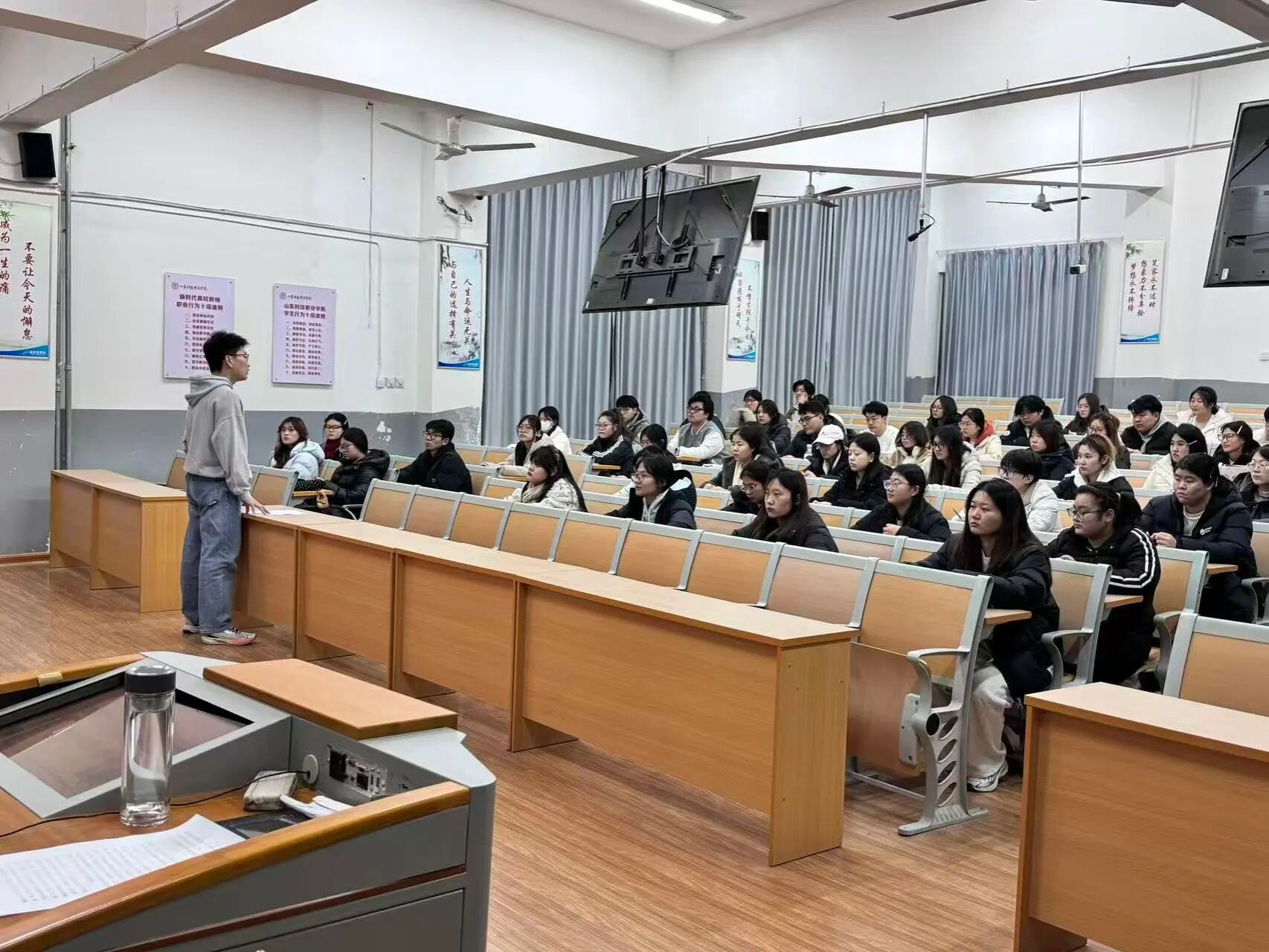 12月10日,我系举行开班仪式,由系党总支书记门玉琢主讲,党员教师代表、入党积极分子参加。根据授课计划,党员教师围绕《中国共产党党史》《中国共产党发展党员细则》《中国共产党纪律处分条例》《培育和践行社会主义核心价值观学习读本》《习近平新时代中国特色社会主义思想的世界观和方法论专题摘编》《习近平的七年知青岁月》等读本,通过理论讲解、案例剖析、互动问答等方式,开展党史学习、《条例》解读、理论学习等课程,系统阐述党的光辉历史、党员发展的原则和规范,以及党的理论创新的现实意义,入党积极分子积极研讨并撰写心得体会。此外,入党积极分子在学校南门附近、“一站式”学生社区,以“发挥入党积极分子先锋模范作用”为主题开展志愿服务活动,将理论学习成果转化为实际行动。