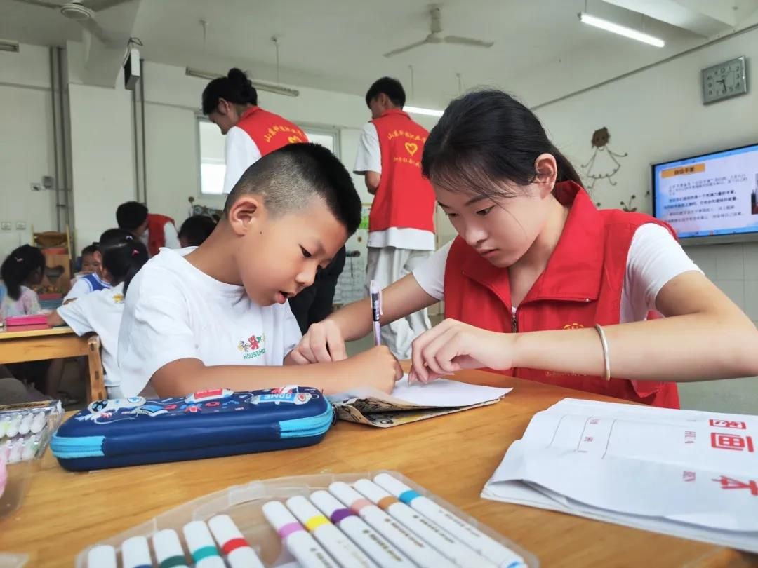 在“心理健康——让成长向快乐出发”课程中,志愿者通过课程引导、现场讨论等方式,让小朋友们学会以乐观和积极的心态迎接生活中的挑战,树立自信心,感受分享的快乐。青年志愿者们还带领小朋友们动手绘画“自信手掌”,让乐观积极的心态跃然纸上。