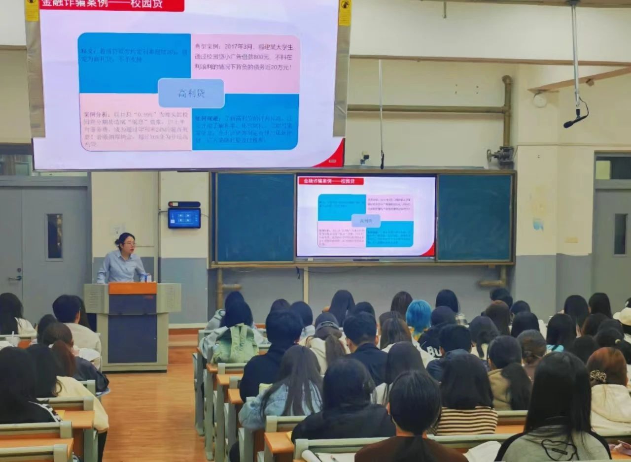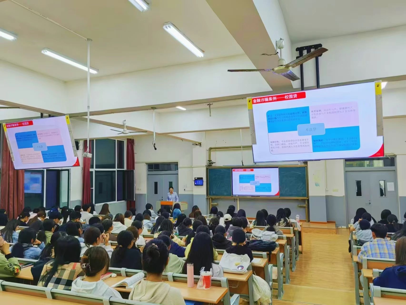 本次讲座结合校园生活,从六个金融诈骗案例出发,以介绍不同形式的校园贷为切入点,警示同学们牢记“六个一律”和“五不要”,引导其树立正确的财富观,合理使用投资理财工具。同学们纷纷表示,要牢固树立安全意识,常记安全口诀,筑牢安全防线。