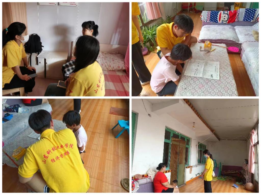 活动下午,四名志愿者们乘车来到了潍坊市潍城区于河街道韩家村,开展了本次走访活动。经过电话联系,志愿者们见到了结对儿童——韩氏两姐妹,她们穿着朴素,但眼里依旧不缺乏孩童该有的稚气。志愿者们分为两组,一组教姐姐英语,一组教妹妹学数学,解决了部分学校学习遇到的问题。姐姐还同志愿者分享了自己近期学习以及生活状况,也向志愿者倾吐了最近的“小烦恼”,志愿者们为她解答,并鼓励她努力学习,积极向上,用自己的知识改变命运。