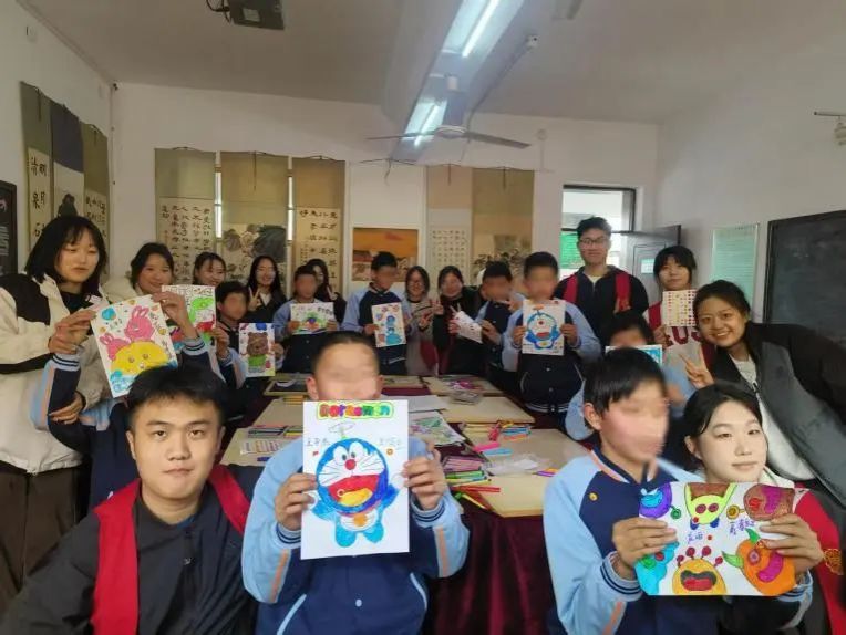 活动通过手语舞蹈、填涂绘画、户外游戏三部分展开。手语舞蹈《隐形的翅膀》为本次活动拉开序幕,志愿者与孩子们用灵动的双手演绎歌词中的希望与力量,用鲜明的笔触描绘童年的纯真与美好,用欢快的步伐感染着在场每一位工作人员。一名志愿者分享道:“孩子们虽然不善表达,但眼睛里的光芒传达出信任与快乐。当绘画作品被高高举起时,我感受到了友谊和奉献的强大力量。”