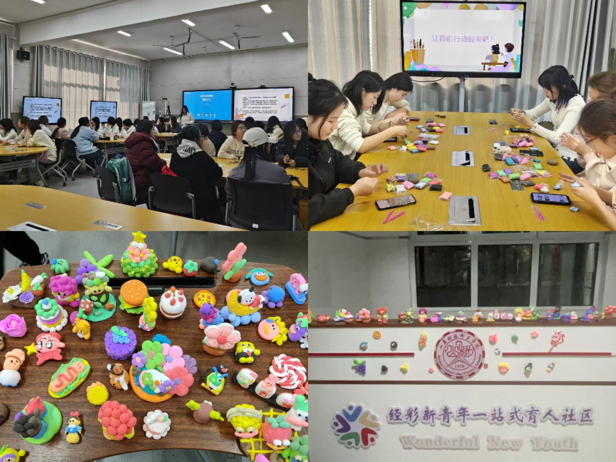 活动开始,主持人介绍活动宗旨,解读比赛规则及投票流程。参加人员释放想象力与创造力,将构思与情感巧妙融入黏土作品中,在DIY过程中共同经历了一场心灵解压之旅。活动尾声,参与者将黏土作品放置在“经”彩新青年“一站式”学生社区展示,吸引了众多参观者拍照打卡。