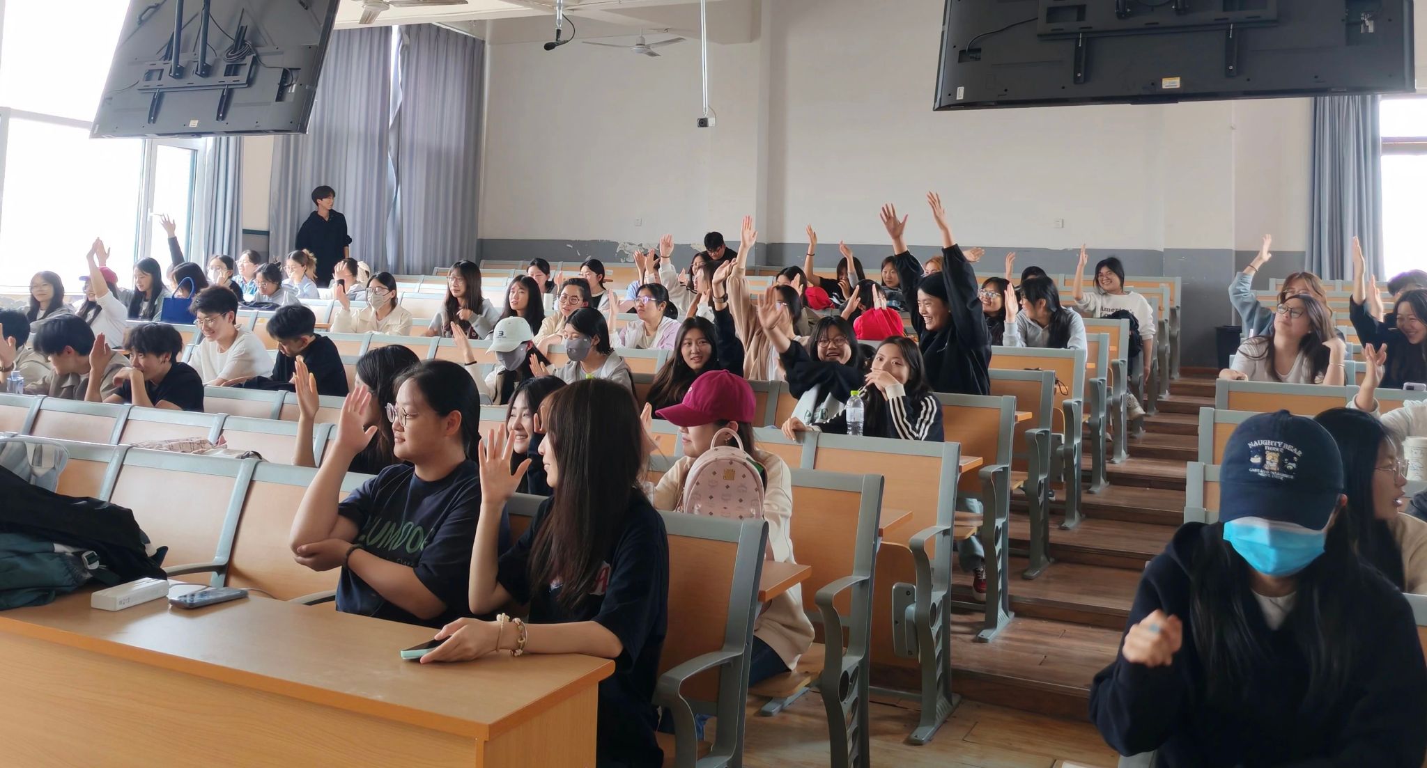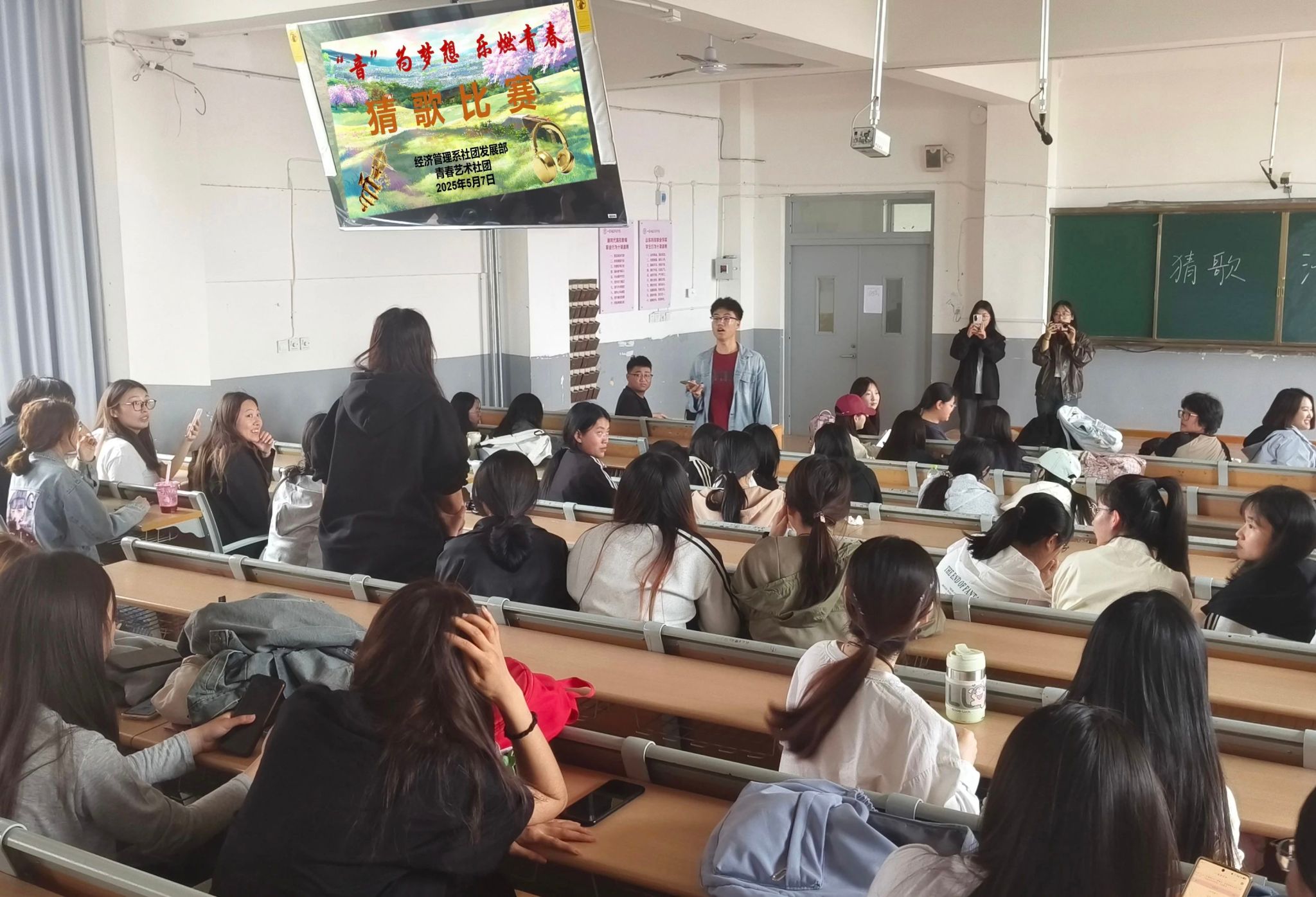 活动过程中,同学们各显神通。有的同学凭借超强的音乐记忆力,歌曲前奏刚起便能脱口而出正确答案;有的同学则沉浸在旋律中,跟着节奏轻轻哼唱,凭借对歌曲独特的感知力赢得胜利。每一次正确抢答,都伴随着现场阵阵欢呼与掌声,这不仅是对获胜者的肯定,更是大家对音乐共鸣的热烈表达。整个活动现场,欢呼声、笑声、音乐声交织在一起,构成了一曲充满青春活力的交响乐。
