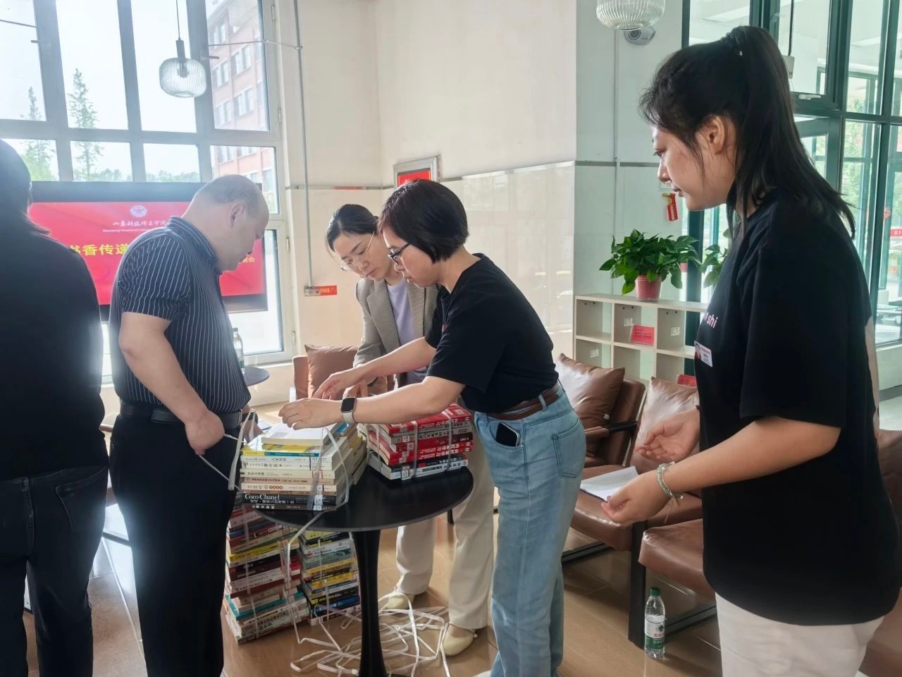 活动中,图书馆馆长李爱香及相关馆员为社区送来涵盖经济、管理、人文等多个领域的图书300余册,并围绕资源建设与文化育人与在座教师、学生代表开展了专题调研。