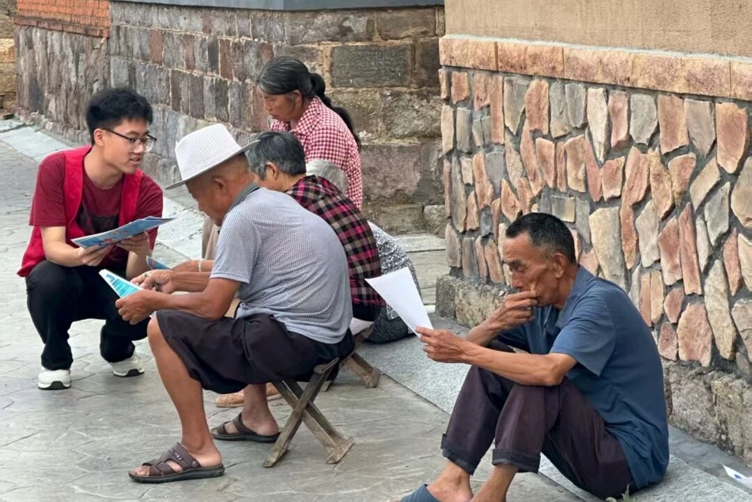 在曹家庄村,志愿服务队针对老年人群体开展了“银龄数字课堂”系列活动。志愿者们通过一对一教学,帮助老人们解决智能手机使用中遇到的困难,帮助老人跨越“数字鸿沟”。同时,通过成员们自主设计的宣传单页和情景演示等形式,重点向村里老人科普“AI反诈”知识,介绍“AI换脸换声”“保健品治病”“冒充电商物流客服”等新型骗局,以生动案例向老人揭示诈骗手段,提升其防诈意识,筑牢乡村反诈防线。在民生调研中,志愿者通过唠家常、填问卷等形式,深入了解当地村民在家庭收入、养老保障、子女教育及产业期盼等民生诉求,为未来持续帮扶确定方向。
