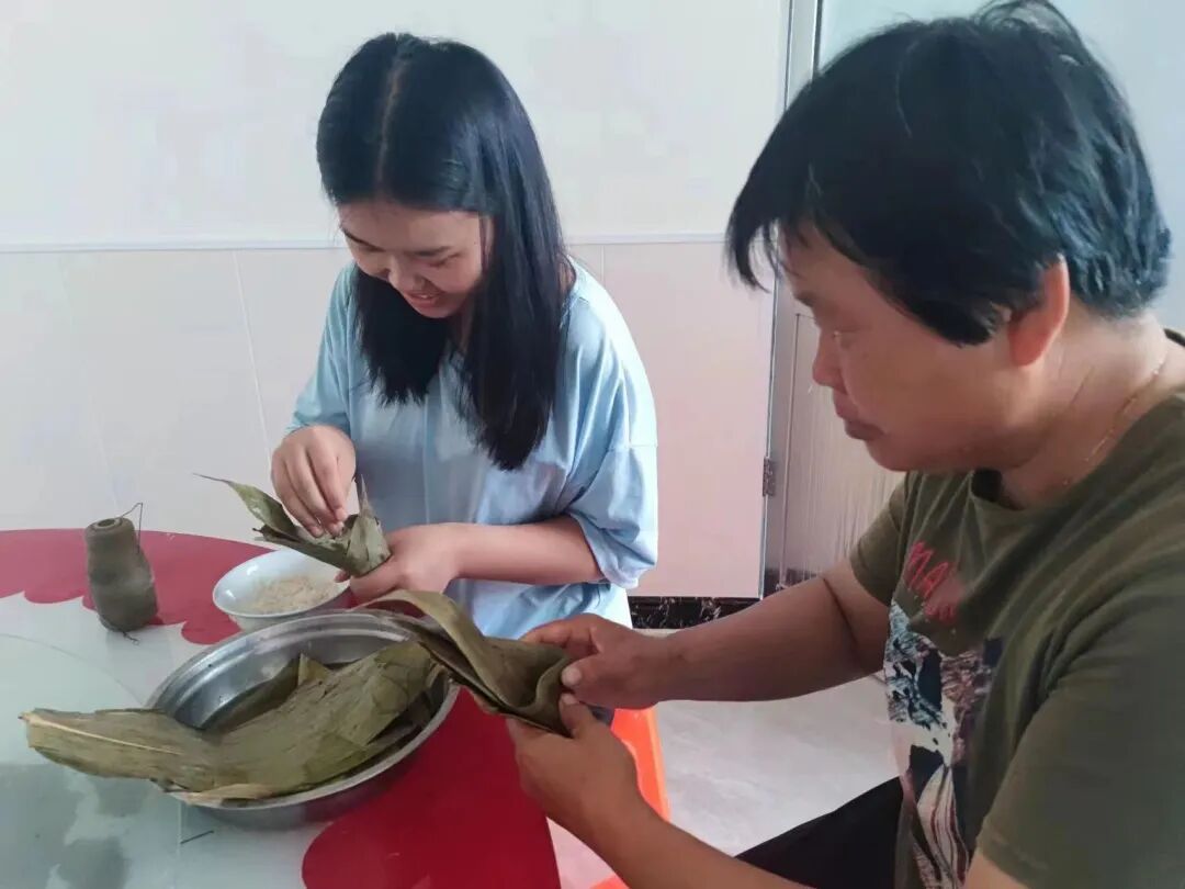 活动期间,同学与家人以及朋友们一起体验包粽子、编制五彩手环等端午习俗。在制作粽子时,一双双巧手飞舞,一张张绿莹莹的粽叶变成漏斗状,糯米、红豆等食材被填进粽叶“肚”,一缠一系,一个粽子就完成了;在编织五彩手环时,同学们用赤、青、黄、白、黑色粗丝线搓成五色丝线饰物,系在手臂或送给亲朋好友,以此来祝愿一年中可以获得好运。五彩缤纷的端午习俗映衬着整个端午假期的丰富多彩,这同时也象征着我国传统文化的多样与丰富。