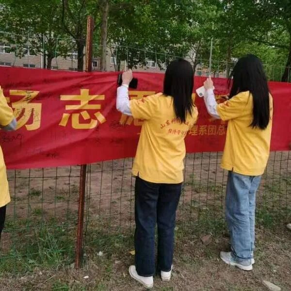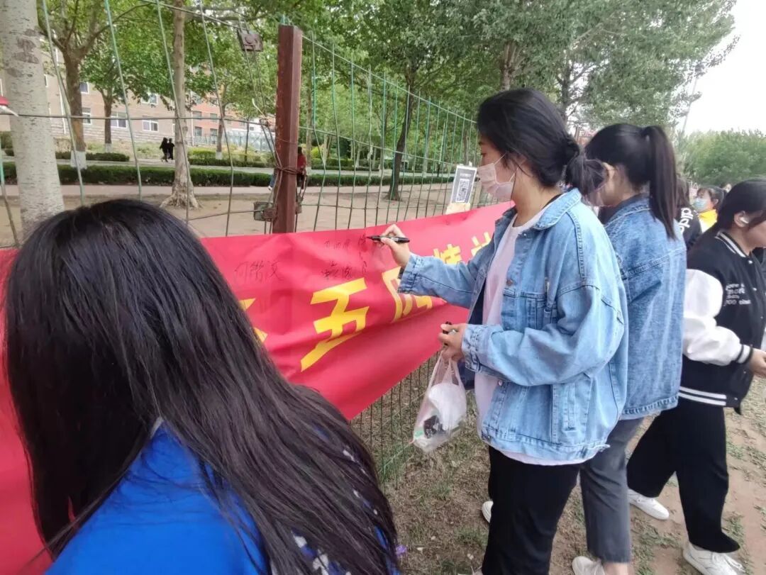 为了纪念五四运动73周年,弘扬“爱国、进步、民主、科学” 的五四精神,营造良好的校园文化氛围,用实际行动践行“奉献、友爱、互助、进步”的志愿精神。必威西汉姆官网平台团总支于5月7日开展“承五四精神,扬志愿风采”——创文明校园及横幅签名活动。