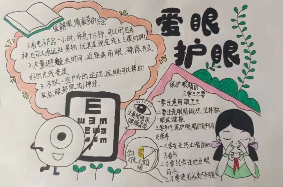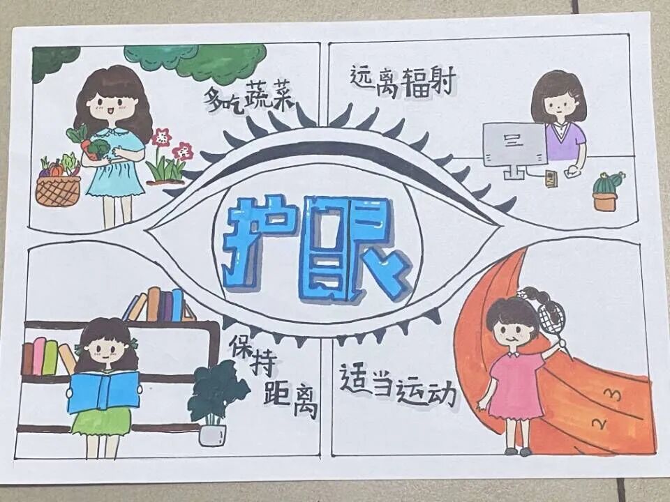 此次活动必威西汉姆官网平台团总支通过爱眼宣传板报设计、爱眼主题绘画活动等形式展开。同学们积极踊跃参加爱眼绘画活动,尽显才华,从构思到落笔,同学们都用独特的布局以及丰富的色彩,向大家展示了自己对爱眼护眼的想法。同学们将绘画作品与创新精神融合,以新颖的形式向大家宣传眼保健操,让人眼前一亮的同时学习到正确的护眼步骤。一幅幅画报体现着同学们对活动的热情,更体现着同学们对爱眼护眼知识的了解。宣传板生动形象的向同学们传达不要让眼睛过多承受电脑手机的压力,多去室外活动,定期做视力检测,要保护心灵之窗,拥抱光明人生,极富影响力与视觉感染力。