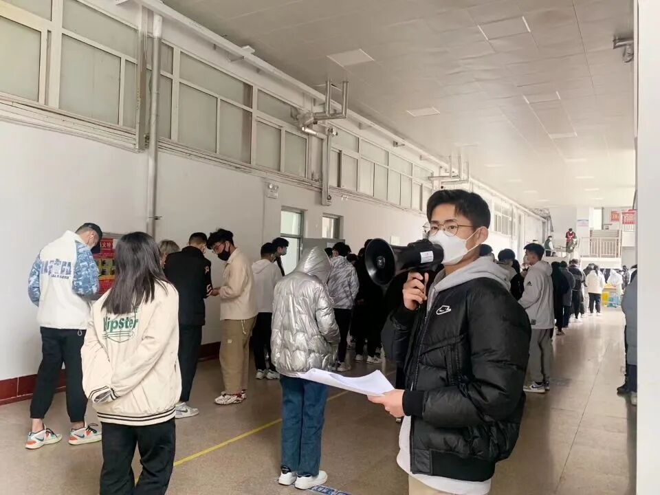 面向全体学生招募经管防疫青年志愿者服务队,在全系核酸检测过程中,有序引导同学们佩戴口罩、携带身份证并维持学生们等待检测核酸时的秩序,确保了核酸检测的有序进行。在自测核酸过程中,经管防疫生活互助志愿者小组按照队伍的分组将自测核酸医疗卫生工具分发到各班,指导学生们完成自测并将自测完后的残留材料收集并送至学校规定地点。