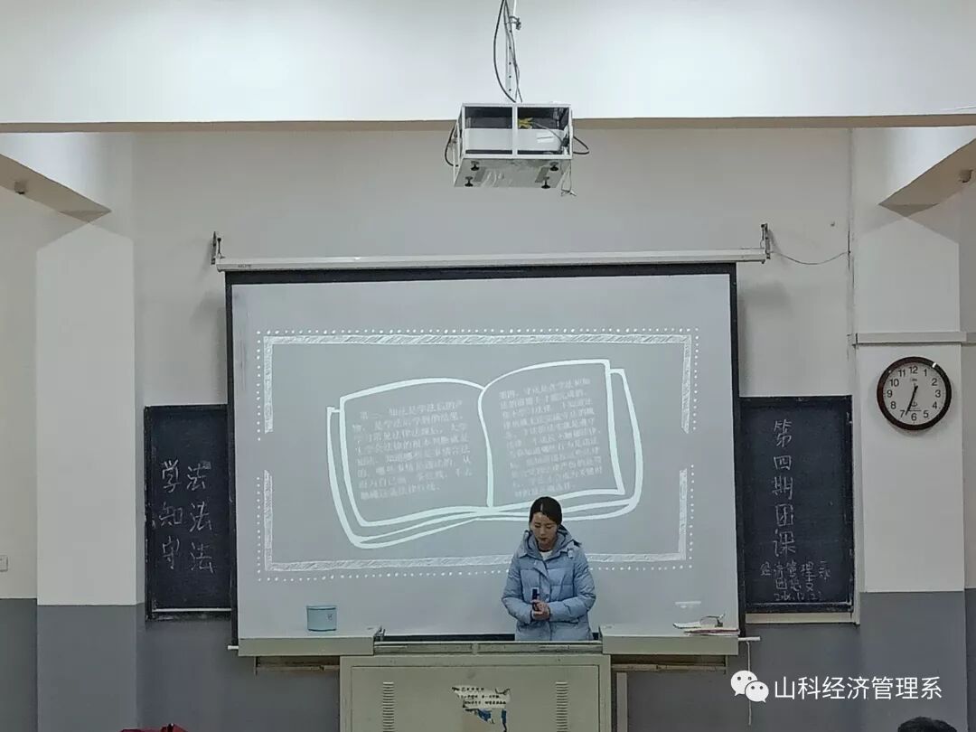 为进一步加强同学们对法律的认识,增强同学们对法律的了解,我系团总支在2018年12月24日晚于问辩楼214、314等教室开展了以“学法、知法、守法”为主题的第四期团课活动,号召我系学生学会遵纪守法。本次活动的目的是让各位同学更加深入的了解法律并学以致用。