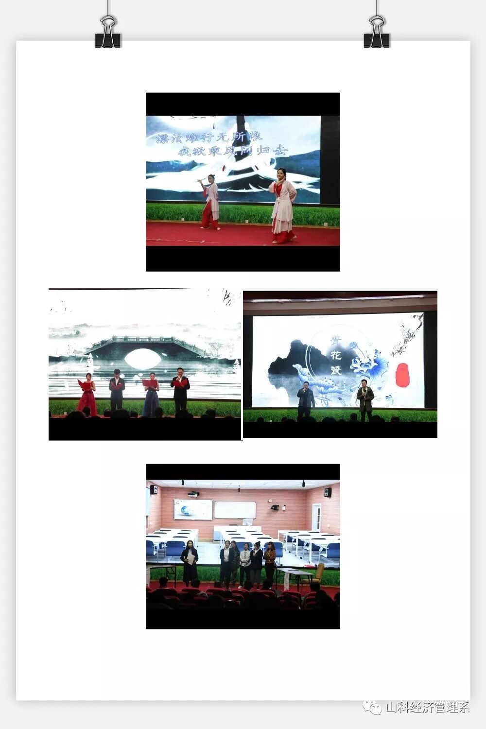 经过各系的精心编排、演绎,将古典诗词、戏曲、音乐与舞蹈呈现在舞台上,达到了文学与艺术、传承与发展的完美统一。优美的意境,婉转的戏曲,优雅的舞蹈,慷慨激昂的诵读给大家献上了一场震撼心灵的视听盛宴。