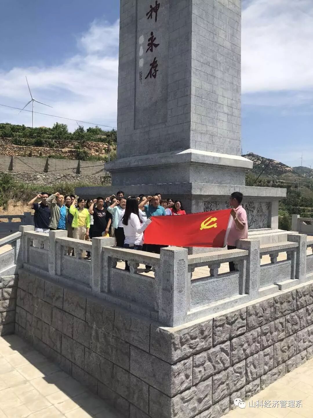 在山东海阳地雷战纪念馆,全体党员深入了解学习了赵守福等抗日英雄的的光荣事迹,参观了地雷战时期遗留的各种革命文物,真切感受了海阳人民与我党我军建立的深厚情谊。随后,全体党员不畏烈日“烤”验,不惧山路崎岖,来到“地雷战精神永存”纪念碑下,追忆革命艰难历程,缅怀革命英雄先烈。紧接着,陈守学书记带领全体党员面向党旗进行庄严宣誓,重温入党誓词,牢记入党初心使命。最后,党总支全体党员一行观看了《地雷战》话剧表演。话剧逼真地还原了海阳人民与八路军同心同德、同仇敌忾,共同抗击日本侵略者的场景,使全体党员接受了一次全新的精神洗礼。