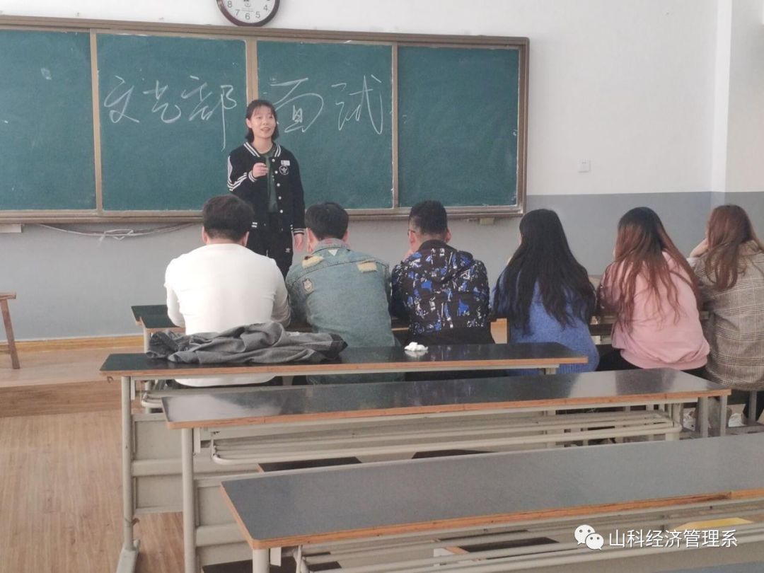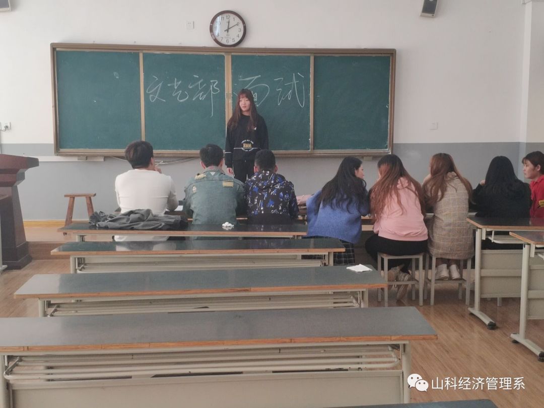 本次面试分为个人介绍、才艺展示、问题答辩三部分。目的是充分发掘和培养有才艺、会组织、能管理、高素质的文艺骨干,给有才能的同学提供一个展现自我的平台,保证我系各项文艺活动高质量的开展,更好的展现我经管系的风采。