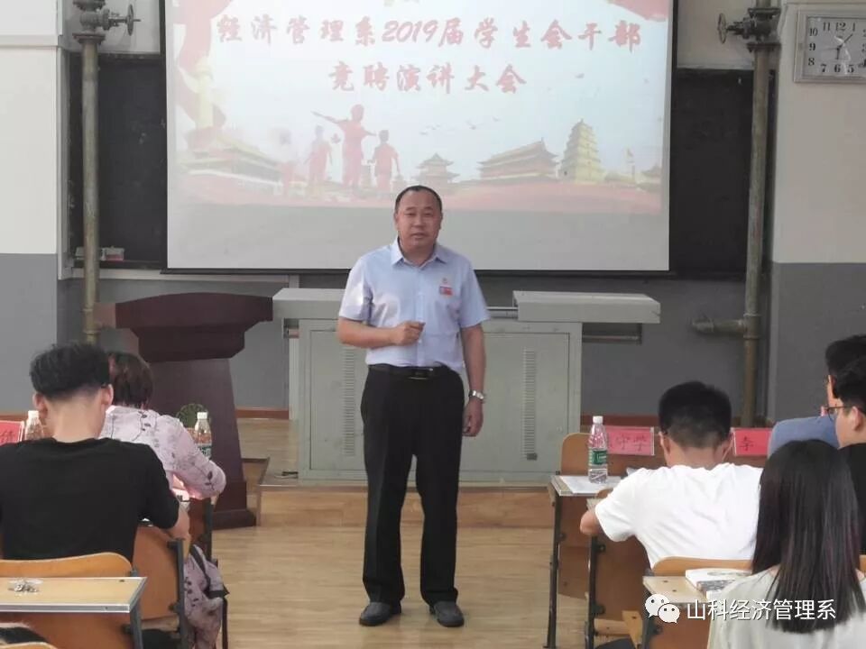6月4日下午5点30分,必威西汉姆官网平台2019届学生会干部竞聘演讲大会在问辩楼414召开,党总支书记陈守学、副书记郝晓,学生科科长李涛老师,各专职辅导员老师参加大会。