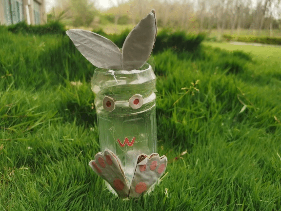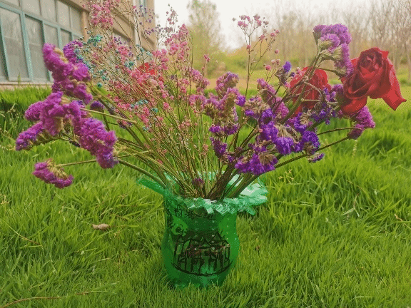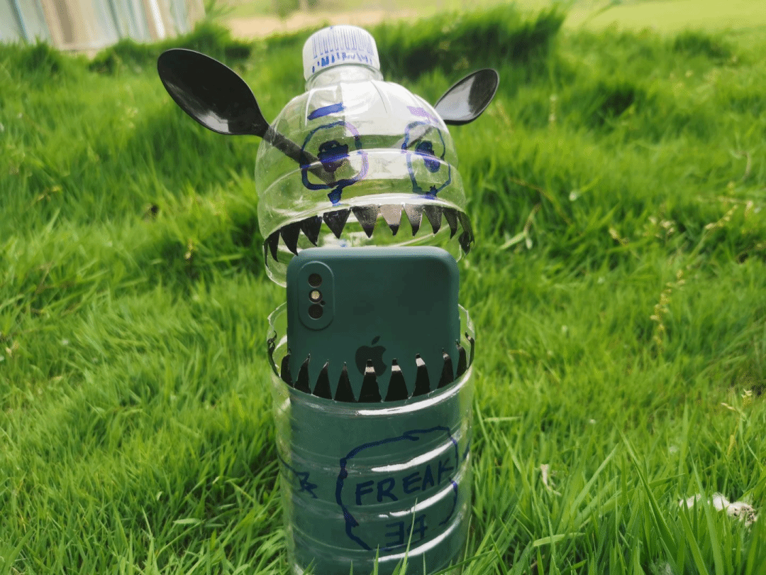 作品寓意:把闲置和废旧的各种塑料瓶和饮料罐重新利用起来,变废为宝,是一种对自然负责的生活方式。把塑料瓶收集起来,做一些有趣好看实用的小制作,既装点了生活,又保护了资源。
