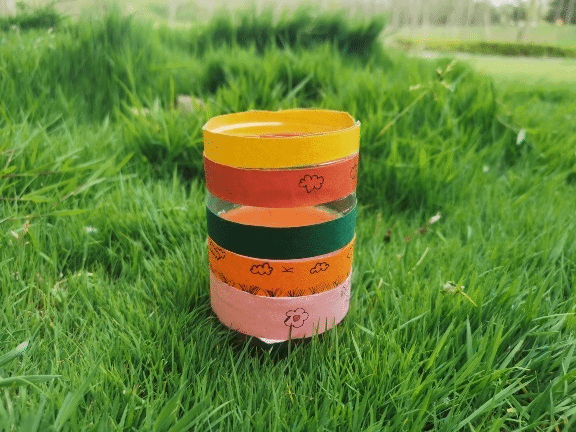作品寓意:我们在生活中会有许多废弃的购物袋,而购物袋的硬度刚好可以做成笔筒。这样用废弃购物袋做出的笔筒既美观又方便,非常实用。