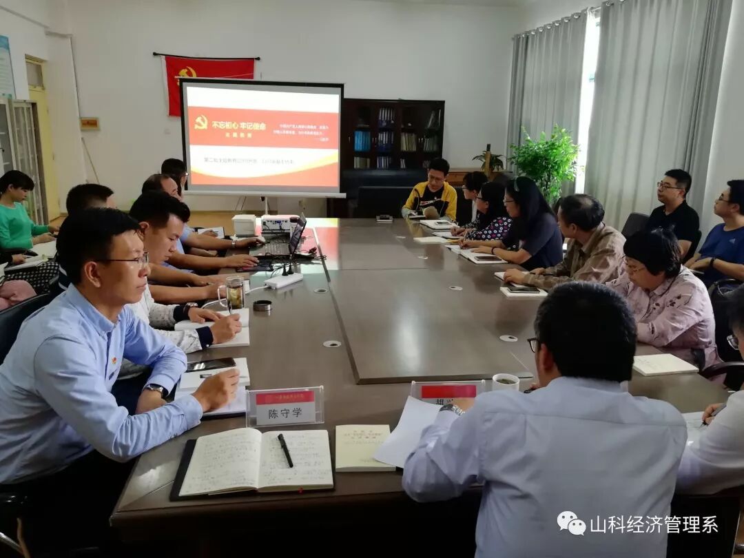 党总支书记陈守学同志从“指导组情况及职责”、“主题教育方法步骤”、“主题教育配档表”三个方面向参会人员作了详细介绍,并指出开展好第二批“不忘初心、牢记使命”主题教育,责任重大、使命光荣,希望大家带头不忘初心、牢记使命,高标准高质量完成各项工作,确保主题教育取得实实在在成效,向学院党委和全院师生交上一份合格的答卷。胡兴珠主任带领参会人员学习了《习近平关于“不忘初心、牢记使命”论述摘编》,并勉励大家以本次主题教育为契机,认真扎实用心开展学习,通过主题教育切实提升政治理论素养、提升干事创业热情、提升业务工作能力。