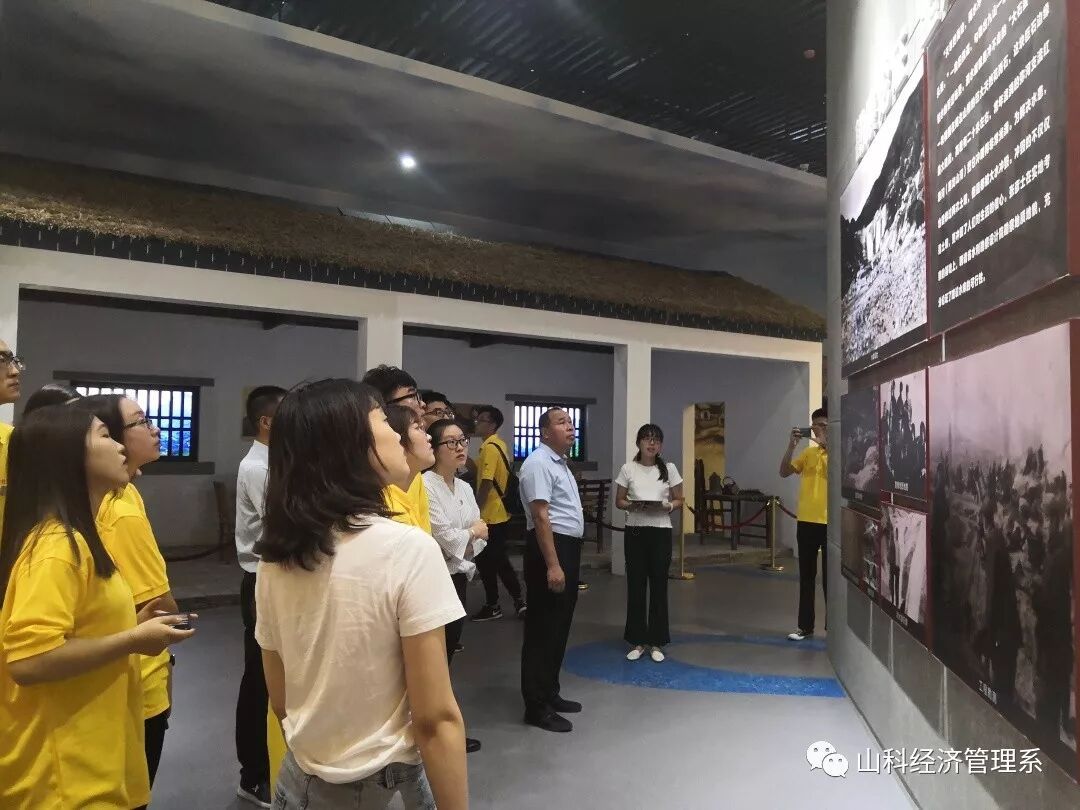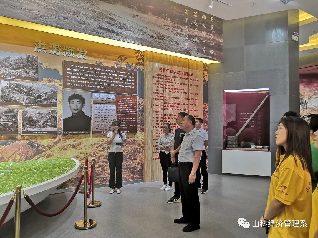 在去往淌水崖水库底部的道路两侧,漫山遍野的青翠,果实累累的苹果、山楂、板栗,让人目不暇接。抵达淌水崖水库底部后当地解说员为我们介绍了由于当时生产力水平极低,九山人民基本依靠肩挑人抬,凭借一种精神和信念在壁高22米、长200多米、光滑陡崖上筑坝截水,才建成了一座集防洪、灌溉、发电、旅游于一体的“高峡平湖”——淌水崖水库。随后我们跟随解说员参观了淌水崖水库纪念馆,深入了解到建设水库的不易。水库1973年正月初八工程正式开工,6年多的时间里党员干部始终战斗在工程一线,抓进度、抓质量、抓安全,和群众一样抬石头、挑沙子、和石灰,干起活来分不出干部和群众。“事再难,难不住干部就难不住群众;天再冷,冻不住干部就冻不住群众”党员干部在建设过程中表现出的身先士卒、冲锋在前的高风亮节更让人动容。