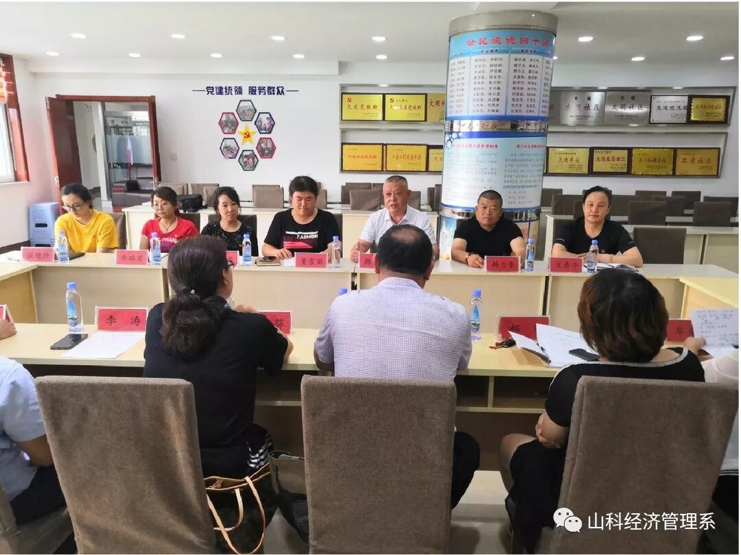 首先,双方分别介绍了相关党组织参会党员同志。随后,道口社区董雪丽主任详细介绍了社区发展情况,指出边缘户数量多,孤寡老人养老、护理难度大,社区儿童假期安全及假期教育管理问题凸显,是当前道口社区亟需解决的现实问题。紧接着,陈守学书记及“双报到”党员针对道口社区现实需求,结合学院师资与专业优势,从共建“四点半”学校、弘扬红色革命家庭优良传统、开展公益培训等方面提出了相关帮扶措施。在最后的座谈中,韩立新书记和董雪丽主任向我校“双报到”党员详细列举了道口社区需求清单,双方就如何进一步密切学校与社区联系,将党员“双报到”工作做实做细、做出特色、做出亮点深入交换了意见,并就近期有关活动的开展达成了共识。