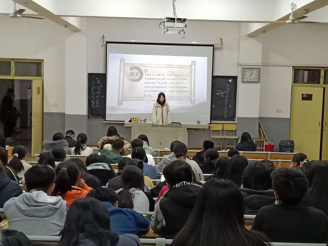 团课主要分三个部分讲述,分别是什么是传统文化、怎样弘扬中华优秀传统文化、怎样让中华优秀传统文化在校园中展风采等。活动开始,向同学们讲述了传统文化的含义及具体表现。接着,从国家、社会及个人等方面讲述怎么样弘扬中华优秀传统文化。最后,举例我系开展的各种弘扬中华优秀传统文化的相关活动,鼓励我系学生积极加入继承和弘扬传统文化的行列,大力弘扬中华优秀传统文化,尽情展现当代大学生良好的精神风貌。