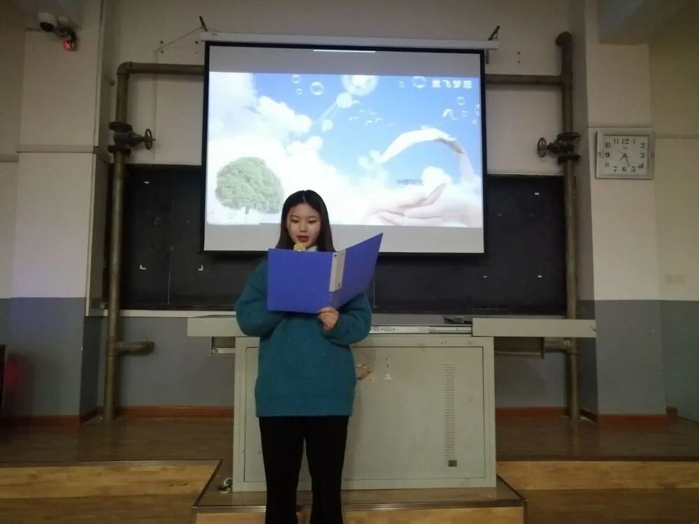 比赛伴随着主持人慷慨激昂的开场词正式拉开帷幕,各参赛选手蓄势待发。首先上场的是参赛选手带来的诗朗诵《再别康桥》,悠长而又温柔的声音萦绕在同学耳畔,仿佛感受到诗中的无尽感叹。随着参赛选手的陆续登场,比赛在《那里永恒的中国》的朗诵中进入了高潮,在背景音乐的拱托下参赛选手意气风发,激昂澎湃的朗诵感染着在场的每一位评委和观众,引人深思、令人动容。最后,比赛在《放飞梦想》的余韵下正式结束。