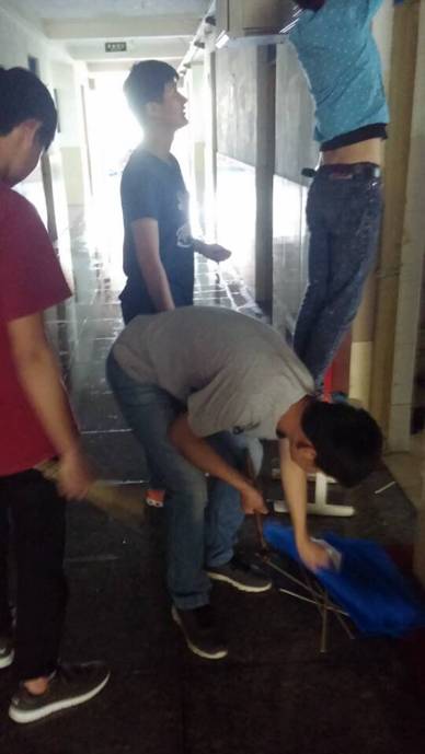 宿管部成员带着工具及崭新的纱网纱窗,按照事先检修的结果依次进行更换。在此期间各宿舍同学积极配合,使更换工作完成的更加顺利,现场井井有条,分工明确。你负责拆纱窗我负责递工具,各宿舍同学还拿出水果送给我们,以表示感谢。我们学生会宿管部的宗旨是“为同学们服务”,一个小时左右公寓内各宿舍纱窗纱网更换完毕,闻着窗外吹进来的新鲜空气,同学们心里十分高兴。