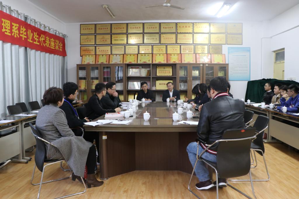 座谈会上,经管系主任代表全体师生欢迎毕业生回母校相聚,对校友长期以来对学校的关注表示感谢,并希望以本次座谈会为契机,搭建校友与学校、校友与校友间交流合作的平台,畅叙旧谊,共谋发展。