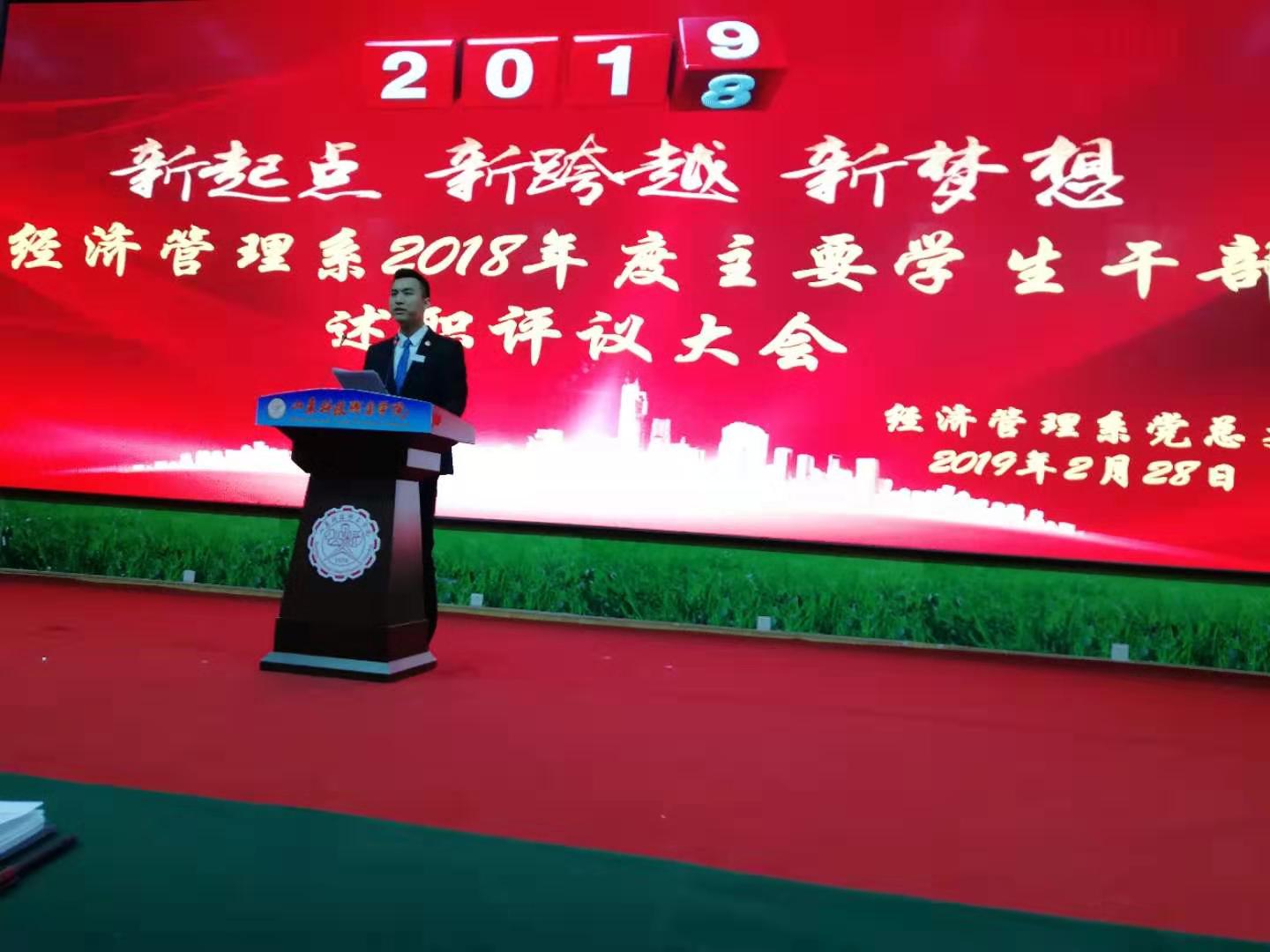 2019年2月28日下午,必威西汉姆官网平台2018年度主要学生干部述职评议大会在工业中心报告厅召开,全体专兼职辅导员参加会议。