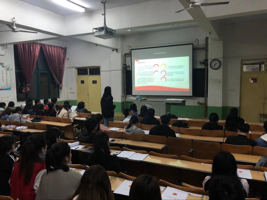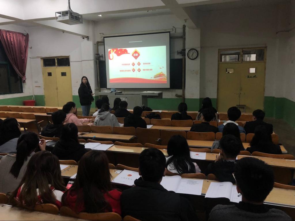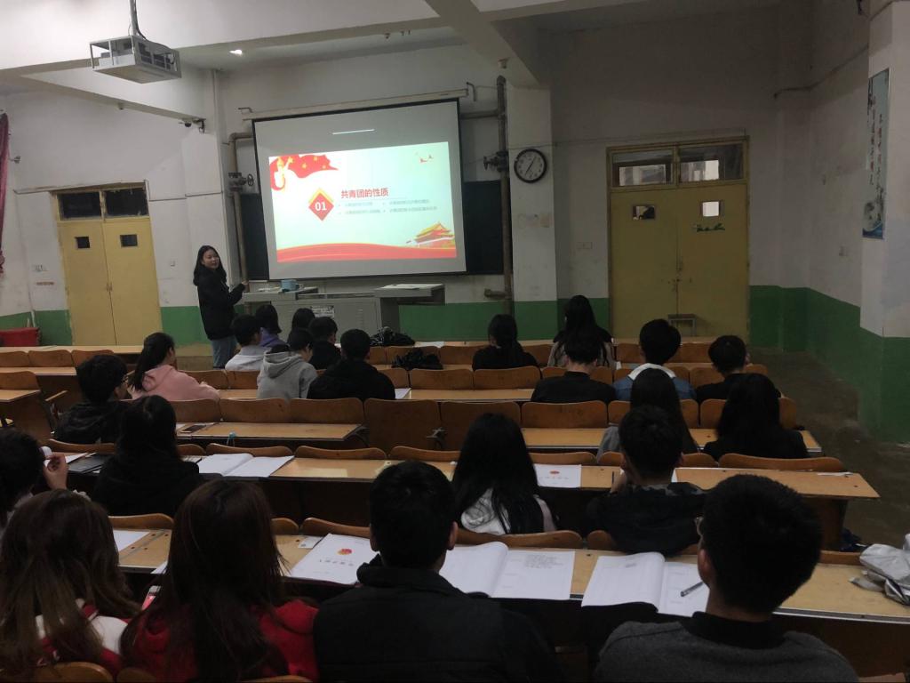 为了让同学们进一步了解掌握更多的团知识,增加他们对入团的荣誉感,2018年4月22日晚7点10分,我系团总支按计划在问辩楼414教室对新入团的同学进行了第一次团课培训,我系团总支学生副书记闫文彬同学主持并主讲了题为《光荣啊,中国共青团》的培训课程。