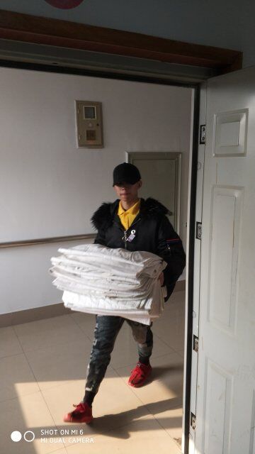 帮助老人晒棉被