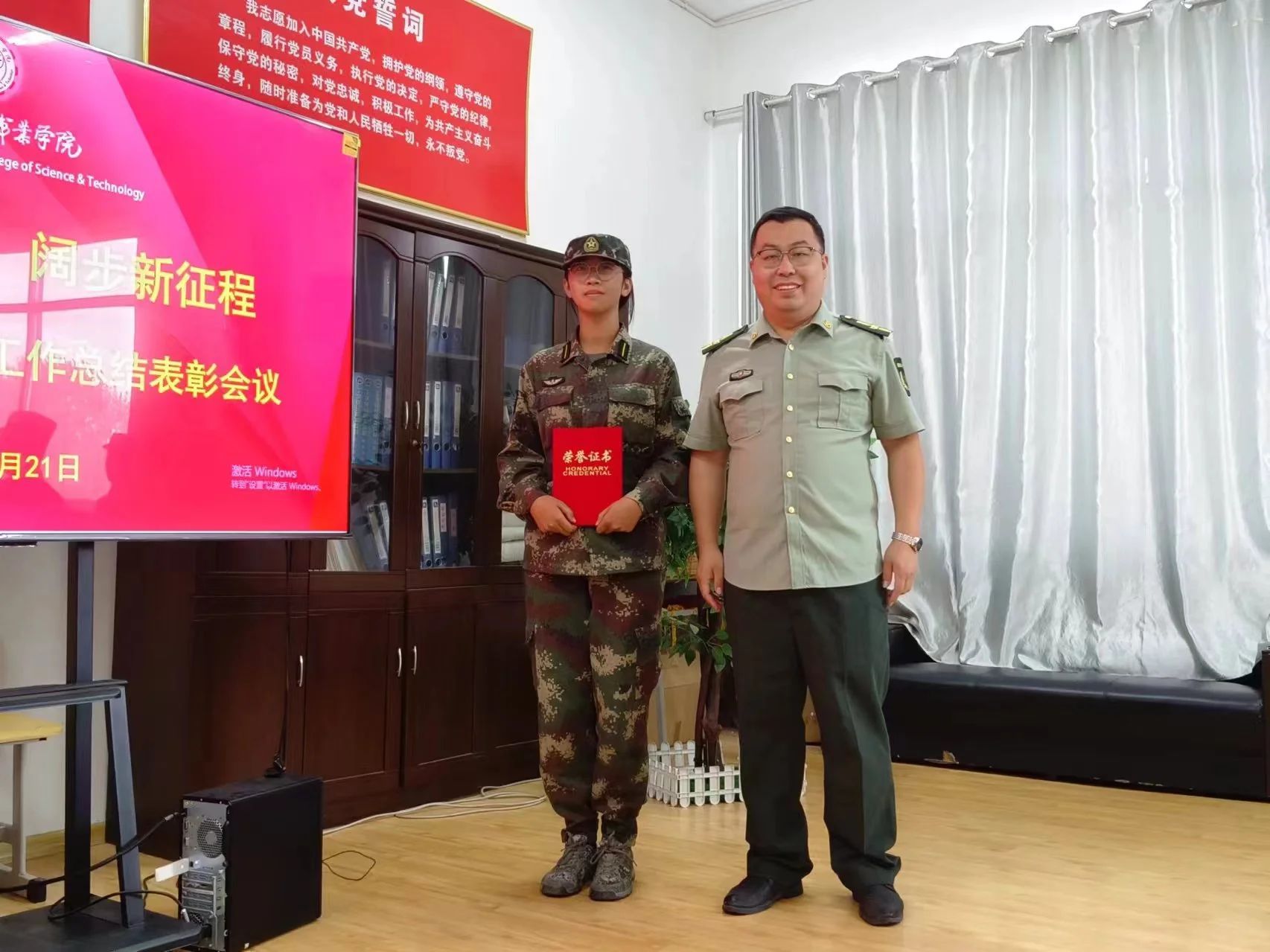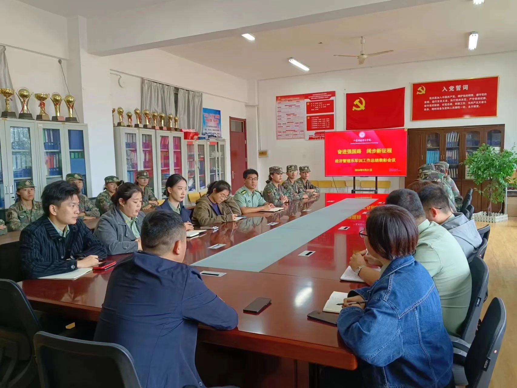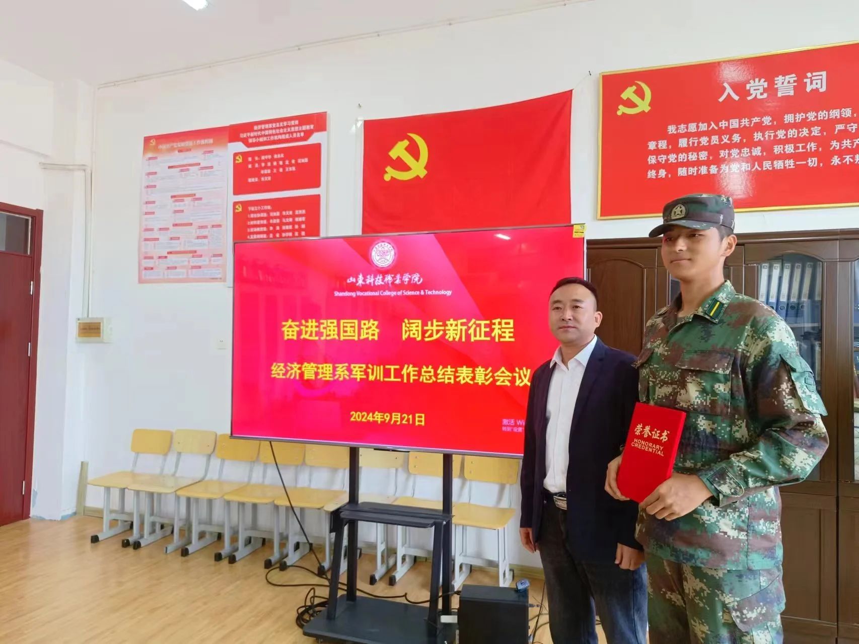 汇演结束后,系部开展了“奋进强国路,阔步新征程”军训工作总结表彰会议,对军训中表现优异的集体和个人颁发证书,荣誉证书见证了他们的辛勤付出,这不仅是对个人的肯定,更是对本次军训成果的认可。