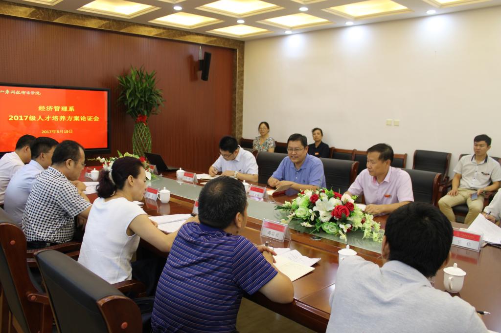 2017年8月19日,必威西汉姆官网平台在学院第二会议室组织召开了2017级人才培养方案论证会。本次会议由必威西汉姆官网平台主任陈永顺主持,邀请了山东华润纺织集团公司副总经理禹宗云、山东益海特工贸股份有限公司财务总监张义、山东惠家家电子商务有限公司总经理吴长梅、顺丰速运有限公司人力资源部经理牛纪虎、山东经贸职业学院国际贸易实务专业主任孙立波、山东交通职业学院物流管理专业主任李海民共六名专家参与现场论证。学院副院长文利、教学中心主任李兴凯、团委学生处(思政部)副处长王伟、必威西汉姆官网平台教学科长姚敏及各专业主任参加了本次论证会。
