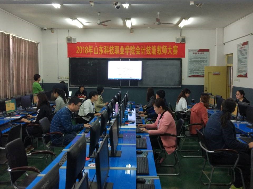 大赛分为上下午两场比赛,上午通过厦门网中网软件进行会计基本技能竞赛,下午通过用友新道“虚拟商业社会环境VBSE”进行会计信息化技能竞赛,两个环节均采用单人单机独立竞赛方式。两场比赛均严格参照山东省会计教师技能大赛程序进行,首先由参加大赛的所有老师通过电脑大屏幕随机选择座位号,然后由裁判长徐永红副主任通过电脑软件,现场随机抽取比赛题目,两场比赛各用时150分钟,选手总成绩为会计基本技能成绩加上会计信息化技能竞赛成绩之和,同时对比赛全程进行现场录像。