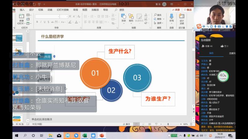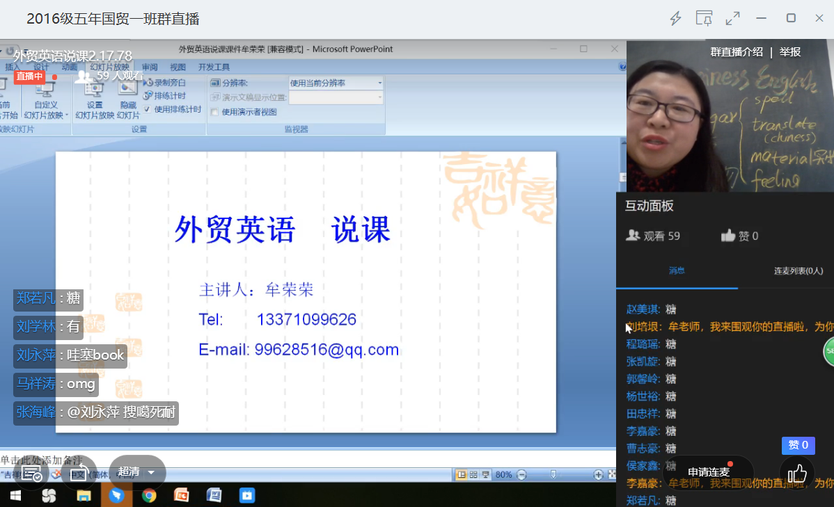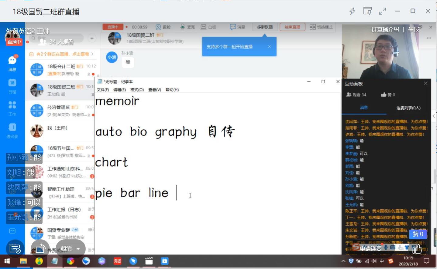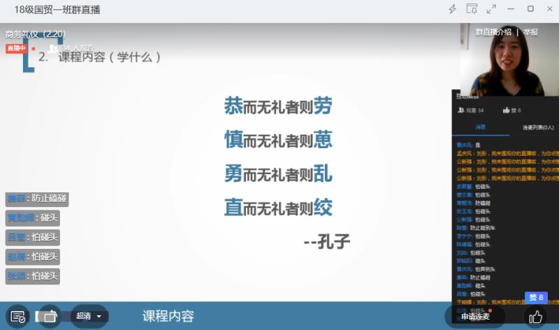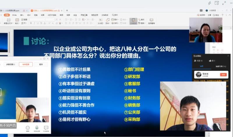 依托前期精心筹备的课程资源和超星、钉钉、腾讯视频等直播软件,必威西汉姆官网平台加强对教师网络授课的观测与帮扶,在全系范围内广泛开展了“全员听课”活动。老师们加入到各班级授课群,通过“预约听课”、“随机听课”、“课程点评”等方式加强学习交流,营造了浓厚的“赶、学、比、超”学习氛围。老师们充分发掘课程思政元素,将疫情与专业课程紧密结合起来,通过新颖的形式、生动有趣的案例、热情洋溢的互动,迅速拉进了老师与学生的距离。通过全员听课活动,发掘了一批现代信息技术掌握娴熟、教学素质过硬、深受学生喜爱的优秀教师,和一批师生反响良好、学生爱听爱学的优质网络直播课程。