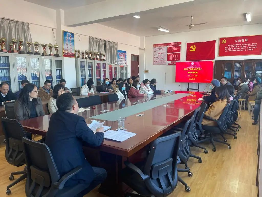 会上,“第一议题”学习了习近平总书记在主持中央政治局第十二次集体学习时的重要讲话精神,集体学习了学校党委书记郑德前在学校2024年度全面从严治党暨党风廉政建设工作会议上的讲话。以观看全国道德模范呼秀珍事迹视频和以她的“我没收过学生一分钱的补课费,教育是奉献,不是索取,是公益,不是功利,先自重才能受尊重”为引,主要从十八大以来廉政建设和防腐败斗争的数据中分析当前形势,从古今廉洁故事中纵观廉政历史,从当今案例中提高警钟长鸣意识,守牢纪法“红线”“底线”为美好生活保驾赋能四个方面展开。本次党课用一组组数据、一个个案例深刻阐释了坚守底线、清正廉洁的重要性和必要性。会议要求全体教师旗帜鲜明讲政治、真抓实干讲奉献,严于律己、恪守师德,一体推进党风政风、教风学风和师德师风建设,把党的自我革命进行到底。