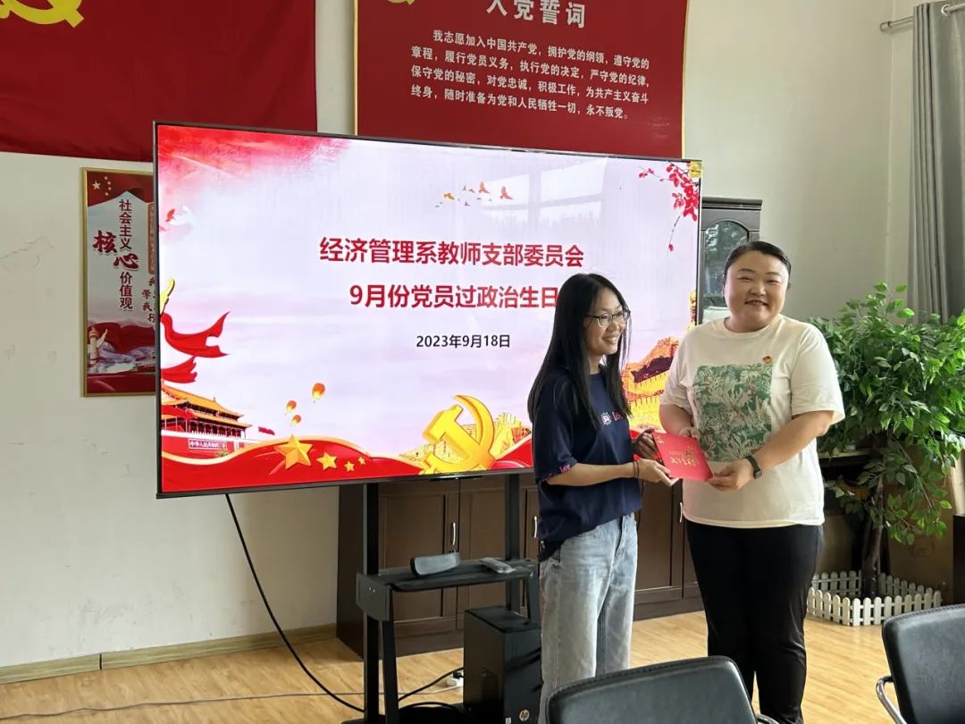 本次主题党日活动首先为党员过政治生日。由教师党支部书记为9月份过政治生日的党员教师同志颁发生日贺卡,过政治生日同志发表感言。
